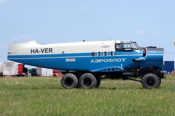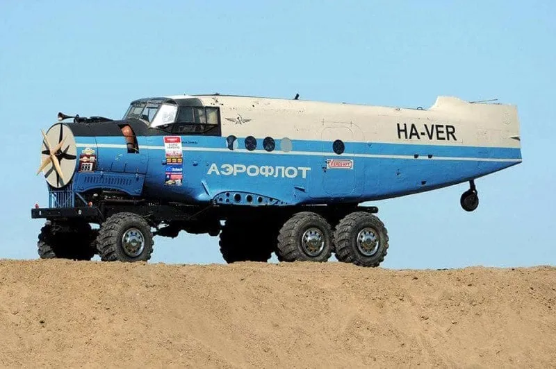عصر ایران- یک ترکیب غیرمعمول و عجیب از وسایل نقلیه را مشاهده می کنید: یک هواپیمای آنتونوف AN-2 روی شاسی یک کامیون کراز-255 6x6 نصب شده است!